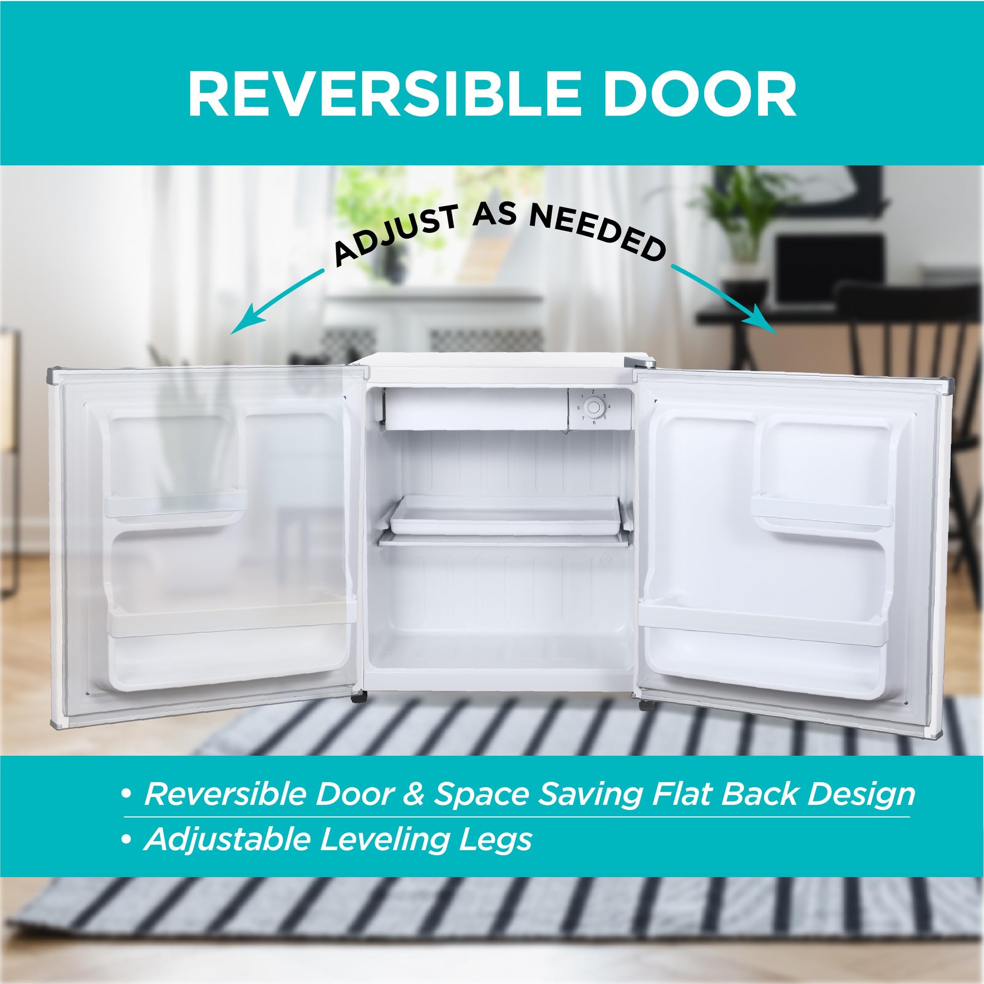 Convenient Features: Reversible door and adjustable leveling legs ensure flexible placement that is perfect as a bedroom fridge, small fridge for office, dorm refrigerator, or a compact mini fridge