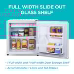 Spacious Capacity: A removable glass refrigerator shelf helps expand storage space while a full and half-width door storage bin accommodates cans and small containers or 1-liter or taller bottles