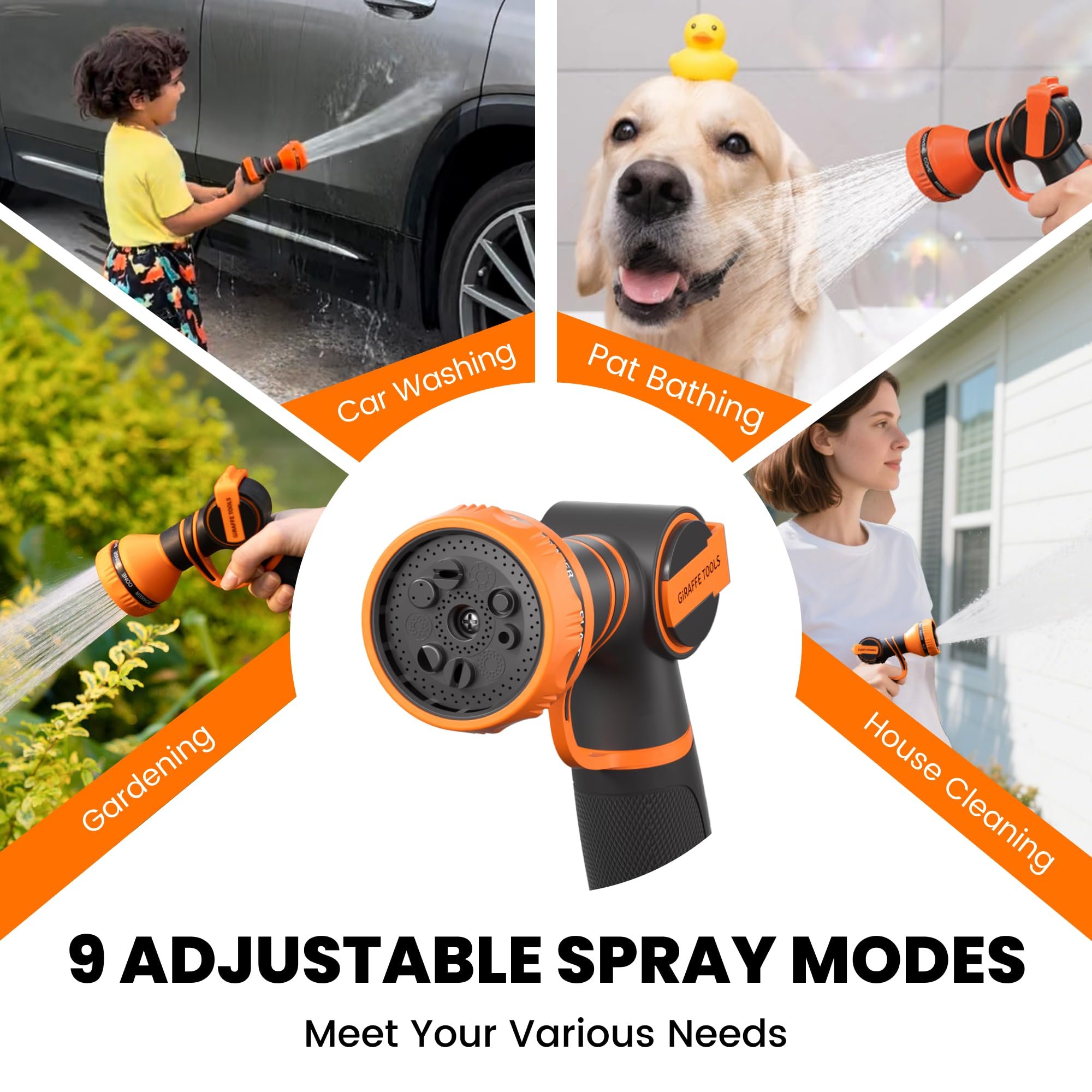Multi-function Nozzle:9-pattern spray nozzle covers all needs—from gentle watering to strong cleaning. Comfortable grip and smooth control make every task effortless.