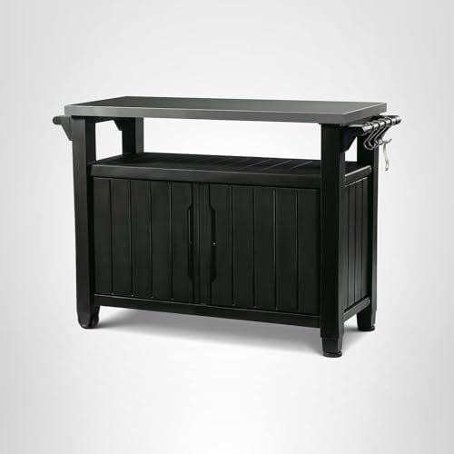 Original product name: Keter Unity XL Portable Outdoor Table with Stainless Steel Top for Kitchen Prep and Outdoor Storage Cabinet for Grilling Accessories, Dark Grey
