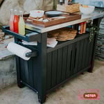 Keter Unity XL Portable Outdoor Table with Stainless Steel Top for Kitchen Prep and Outdoor Stora...
